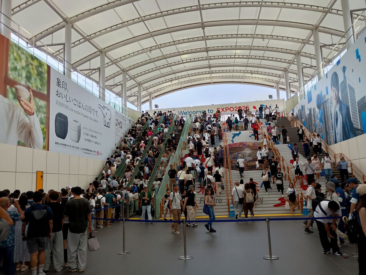 最寄りの夢洲駅の様子。駅から入場まで1時間程かかった。