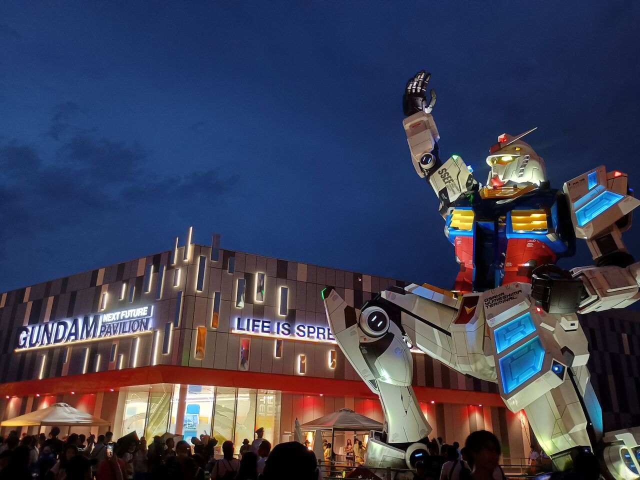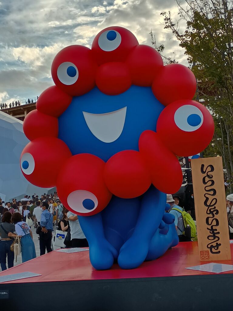入口付近にいる巨大ミャクミャク像。