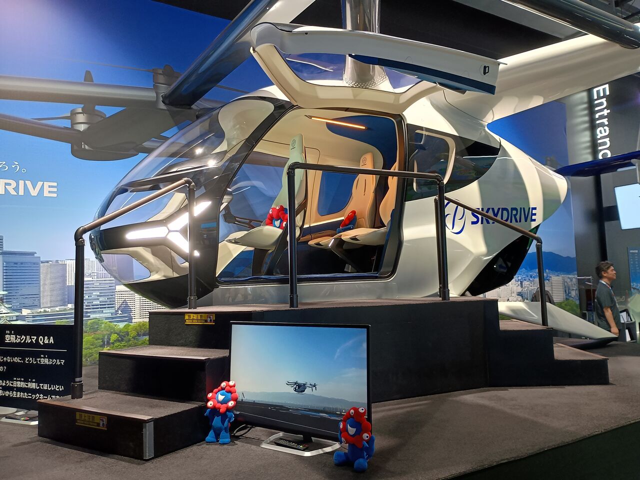 空飛ぶ車の展示です。ほとんどヘリコプターやんけ。