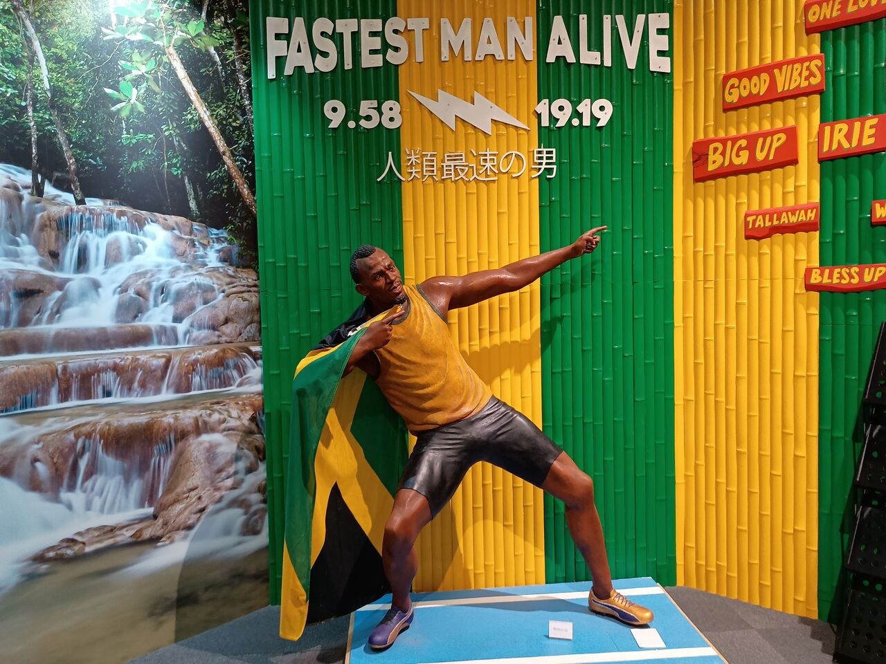 コモンズジャマイカエリアにあった等身大ボルトです。同じくボブ・マーリーもありました。