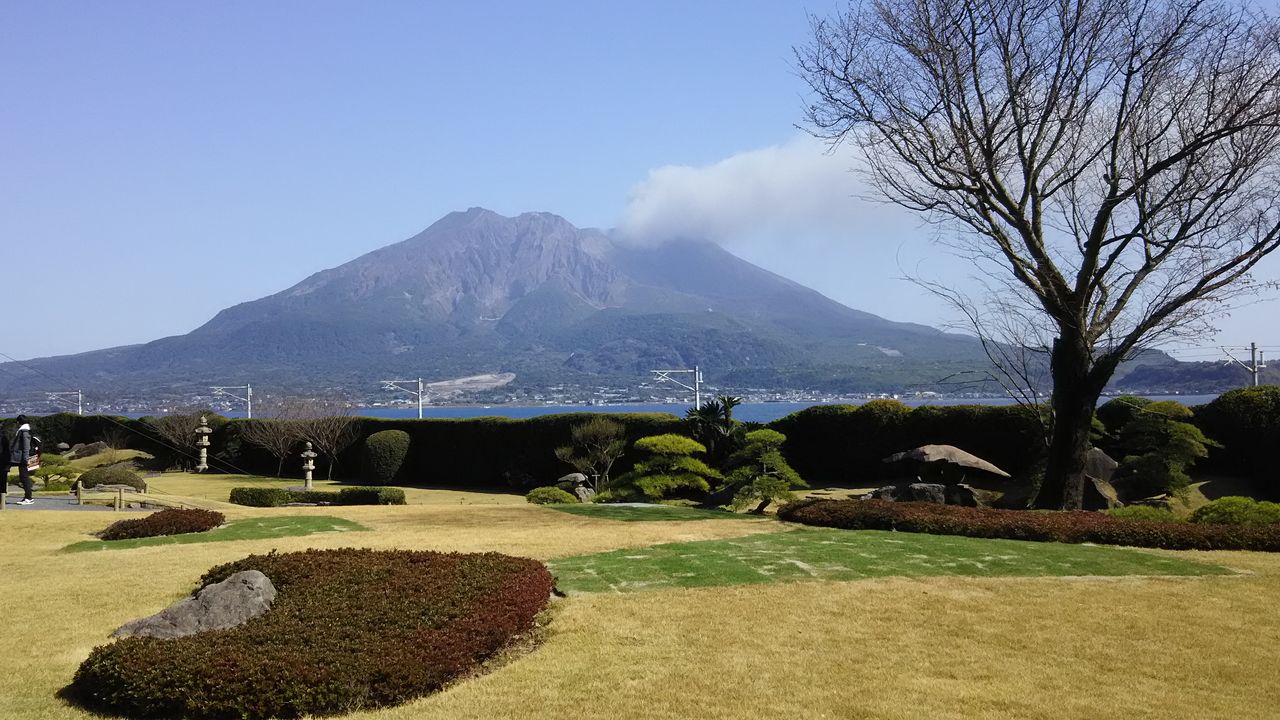 島津家の別荘らしき、仙巌園から見た桜島。
